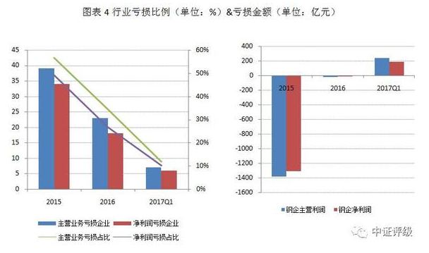 2017年一季度行業(yè)繼續(xù)回暖趨勢(shì),發(fā)布一季報(bào)的61家主體中,主營(yíng)業(yè)務(wù)和凈利潤(rùn)虧損企業(yè)分別僅7家和6家,虧損比例進(jìn)一步下降至11%和10%,61家主體總共實(shí)現(xiàn)主營(yíng)利潤(rùn)和凈利潤(rùn)238和183億元。