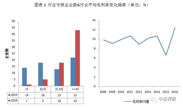 從行業(yè)平均毛利率來看,2016年行業(yè)平均毛利率12.39%,相較2015年的6.60%漲幅接近100%,創(chuàng)2008年以來行業(yè)均值的最高水平。