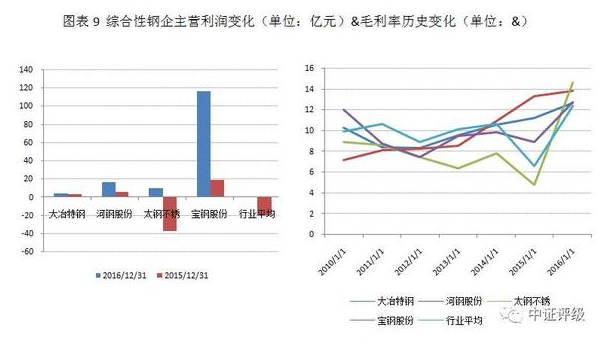 行業(yè)基本面的整體回暖難以掩蓋企業(yè)間的結(jié)構(gòu)分化,部分企業(yè)財(cái)務(wù)數(shù)據(jù)跑輸行業(yè)平均表現(xiàn),甚至變化趨勢(shì)與行業(yè)周期相背離,主要體現(xiàn)為資源型鋼企。另外,同是經(jīng)營(yíng)改善的企業(yè)中也存在不同驅(qū)動(dòng)因素的分化,本輪鋼鐵行業(yè)的強(qiáng)勢(shì)復(fù)蘇既有落后產(chǎn)能淘汰等中長(zhǎng)期產(chǎn)業(yè)結(jié)構(gòu)升級(jí)因素,也有庫存周期和基建投資推動(dòng)的短期因素,不同的驅(qū)動(dòng)因素將決定企業(yè)業(yè)績(jī)恢復(fù)的可持續(xù)性。依賴建筑鋼材和中低端板材的鋼企雖在短期內(nèi)基本面均向好,建筑型鋼企受短期補(bǔ)庫存和地條鋼整頓等影響表現(xiàn)短期內(nèi)甚至好于其他產(chǎn)品結(jié)構(gòu)較優(yōu)的鋼鐵企業(yè),但從中長(zhǎng)期行業(yè)發(fā)展趨勢(shì)看,基本面復(fù)蘇的支撐仍以具有產(chǎn)品結(jié)構(gòu)優(yōu)勢(shì)的大型綜合鋼企和特鋼企業(yè)較強(qiáng)。