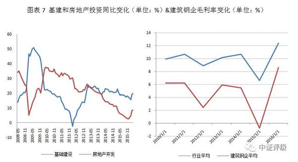 建筑鋼材產(chǎn)品附加值低,行業(yè)競(jìng)爭(zhēng)激烈,受下游市場(chǎng)周期性波動(dòng)影響較大,因此針對(duì)此類鋼企的經(jīng)營(yíng)穩(wěn)定性的評(píng)價(jià)一直較為負(fù)面。2016年以及2017年一季度基建和房地產(chǎn)投資帶動(dòng)的此輪行業(yè)回暖,我們認(rèn)為并不具有持續(xù)性。首先從房地產(chǎn)和基建投資同比數(shù)據(jù)來看,增長(zhǎng)已愈加乏力,在供給側(cè)改革背景下依賴基建和房地產(chǎn)拉動(dòng)經(jīng)濟(jì)增長(zhǎng)的經(jīng)濟(jì)模式已越來越受到質(zhì)疑,未來基建和房地產(chǎn)對(duì)鋼材市場(chǎng)的拉動(dòng)作用將愈加弱化。其次從往年基建投資和房地產(chǎn)投資增長(zhǎng)率對(duì)建筑鋼企的毛利拉動(dòng)程度來看,本輪建筑鋼企的毛利恢復(fù)存在超調(diào),一方面有供給端環(huán)保限產(chǎn)和淘汰落后產(chǎn)能影響,一方面也有市場(chǎng)對(duì)建筑鋼材價(jià)格的資金炒作因素,不具有長(zhǎng)期可持續(xù)性。未來建筑鋼企的毛利或存在回落的風(fēng)險(xiǎn),尤其是宏觀經(jīng)濟(jì)和下游需求未有實(shí)質(zhì)性改善,補(bǔ)庫存趨近飽和情況下,建筑鋼材價(jià)格可能后繼乏力。